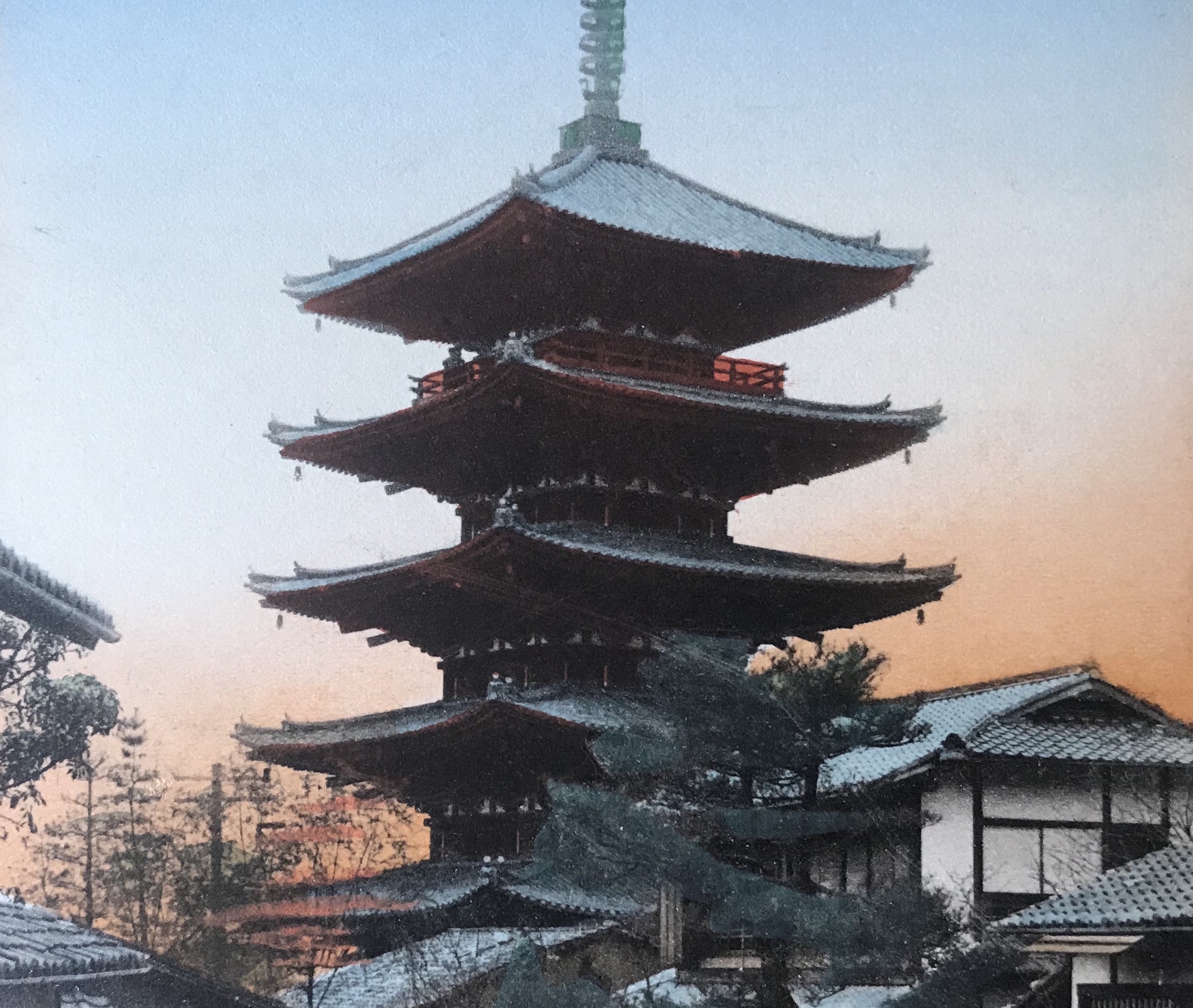 - As of June 2024, I now posses a Period II/Type 4 card with “Printed by Uyeda, Yokohama” on the side edge (Caption on the obverse: “Ogosho, Kyoto”). When considering the fact that I have not yet found Period II/Type 3 or Period II/Type 4 cards with a different publisher’s name strongly suggests there is firm grounding to assume Period II/Type 3 and Period II/Type 4 cards are the products of the Udea publishing house.