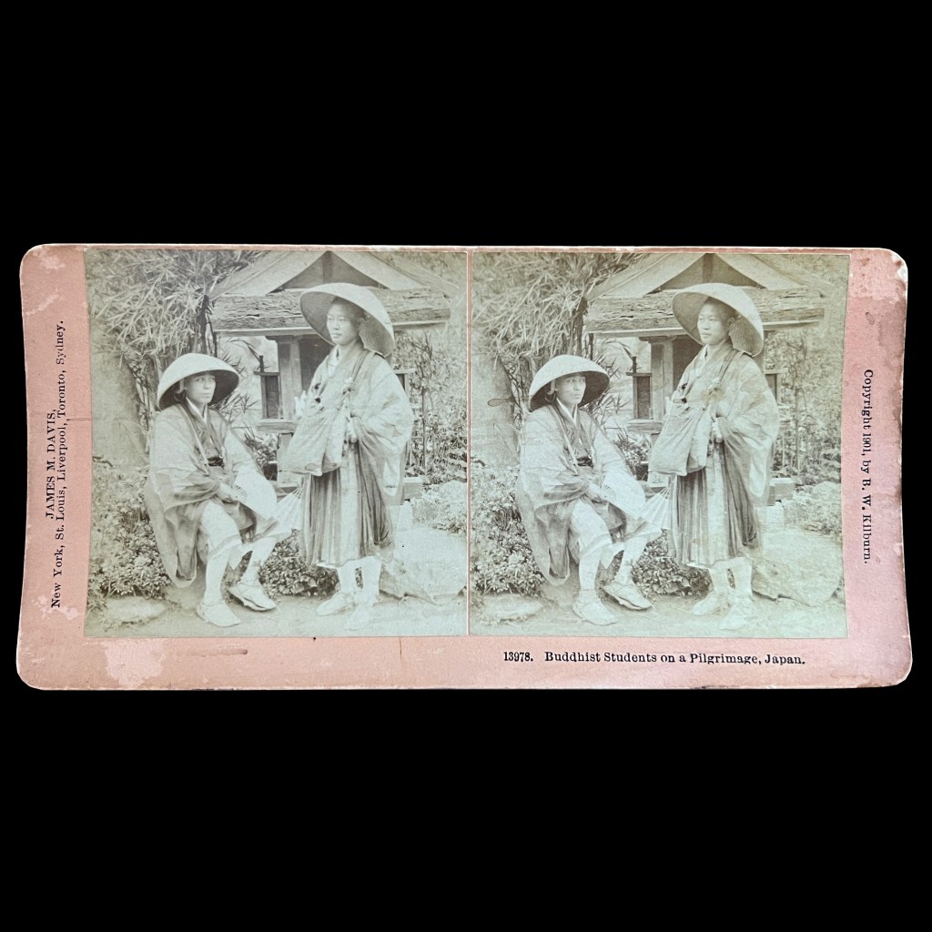 The earliest stereo photographs of Japan were taken in 1859, but it was not until the late 1890s when publishers started to take a genuine commercial interest in the country. In 1901 Benjamin Kilburn released a beautiful series of views of Japan where Buddhism played a minor role.