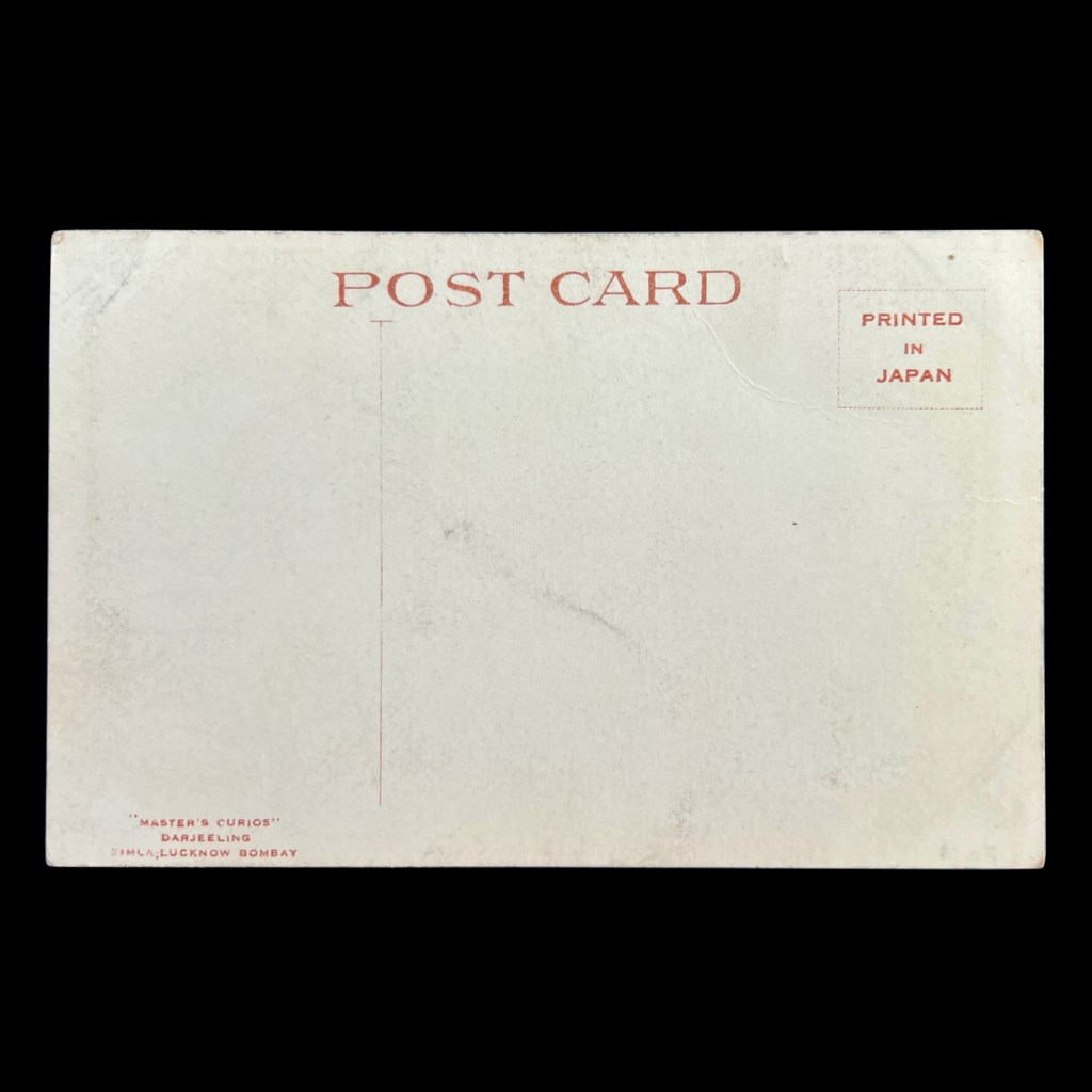 The photograph, retouched considerably here, was taken by P.A. Johnston and Theodor Hoffmann who opened a studio in Calcutta in 1882 and Darjeeling in 1890. This postcard, likely published in the 1920s, was printed in the epicenter of Asian postcard production at the time, Japan.