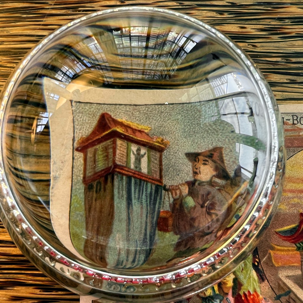 The mystery figure on the left edge is a Chinese puppeteer; distinctions between China and Japan often dissolved under the umbrella of “the Orient.” Such imagery had circulated in Europe since the late 18th century through southern Chinese export paintings depicting popular Chinese occupations.