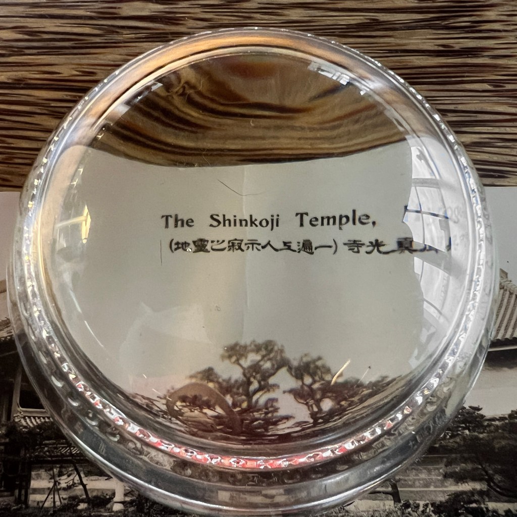 Notably, the Japanese caption provides more commentary on the religious relevance of the site than the English. It notes that Shinkōji was a sacred location where the Buddhist priest Ippen (1239–1289), known for his devotion to the Pure Land, passed away.