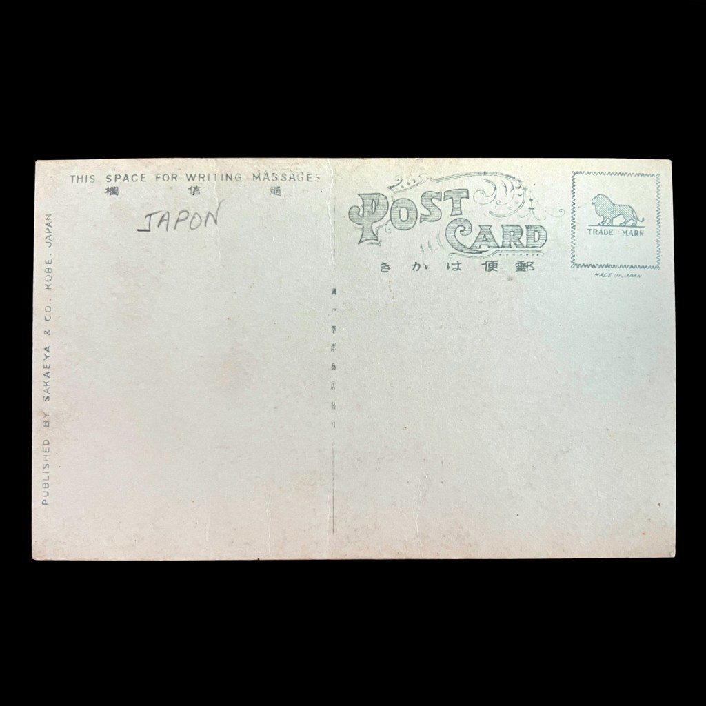 Unlike many Japanese postcards of the era, this is not a photomechanical print, but a chemically processed “real photo” postcard likely released in the early 1920s. The publisher, Sakaeya & Co., was based in Kobe and focused on cards depicting the environs of the bustling port city.