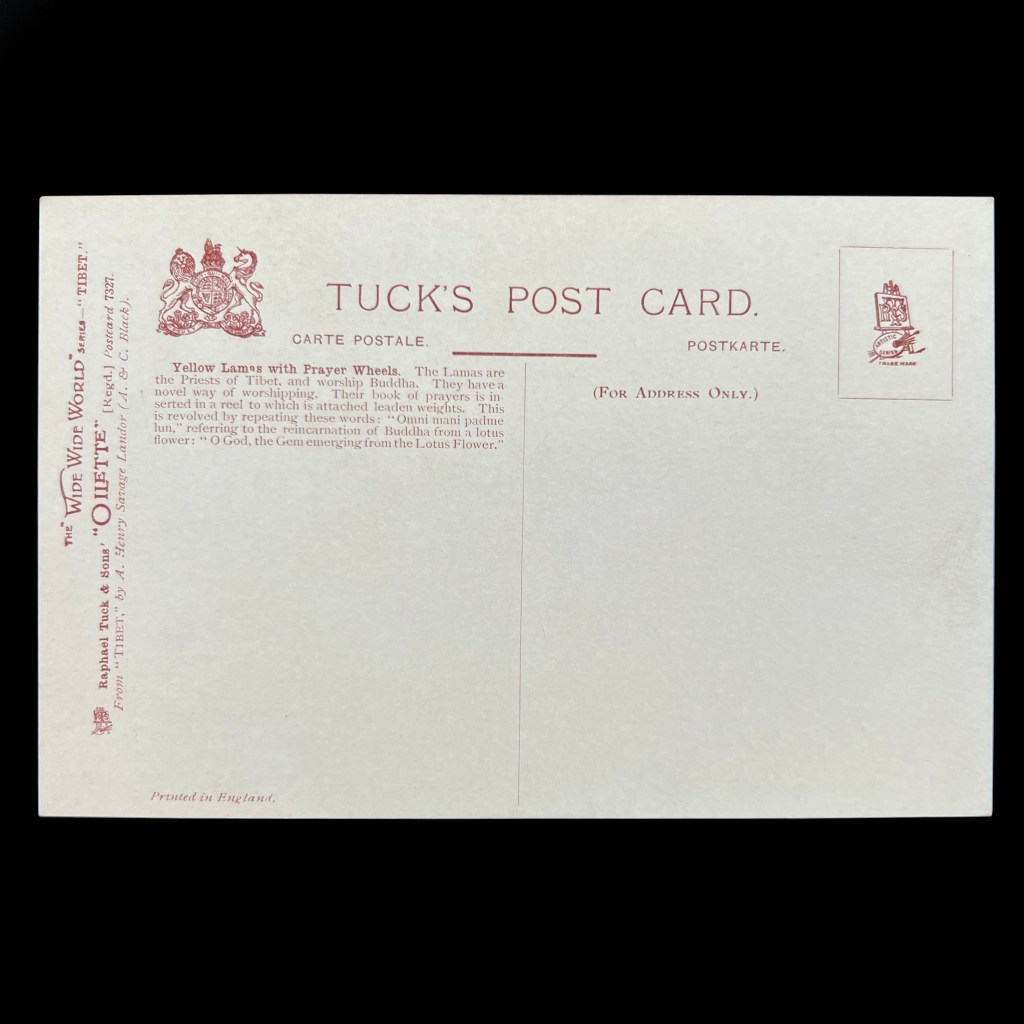 In 1903, a titan of world postcard production, England-based Raphael Tuck & Sons, set themselves further apart by issuing the vibrantly colored Oilette Series based on commissioned oil paintings. Among the first sets released was devoted to the mysterious Himalayan nation of Tibet.