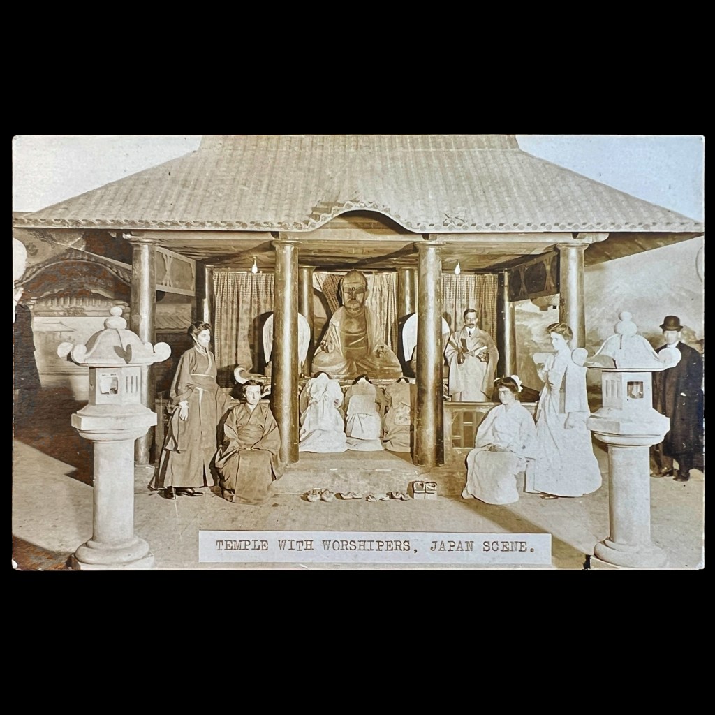 In 1911, to promote efforts of American missionaries abroad, an arm of the missions board sponsored a massive traveling exhibit of the world’s religions. The “Japan Scene” was dominated by a replica of a Buddhist temple, traveling from Boston to Cincinnati and elsewhere.