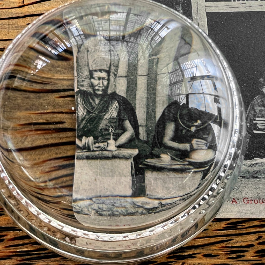 Often described as the oldest Buddhist monastery in Darjeeling, the temple was forced to relocate in 1879 to Ging by British authorities. To read more about details in Phillips’ photograph, consult the Illustrated London News article, viewable here: https://tinyurl.com/329mh668.