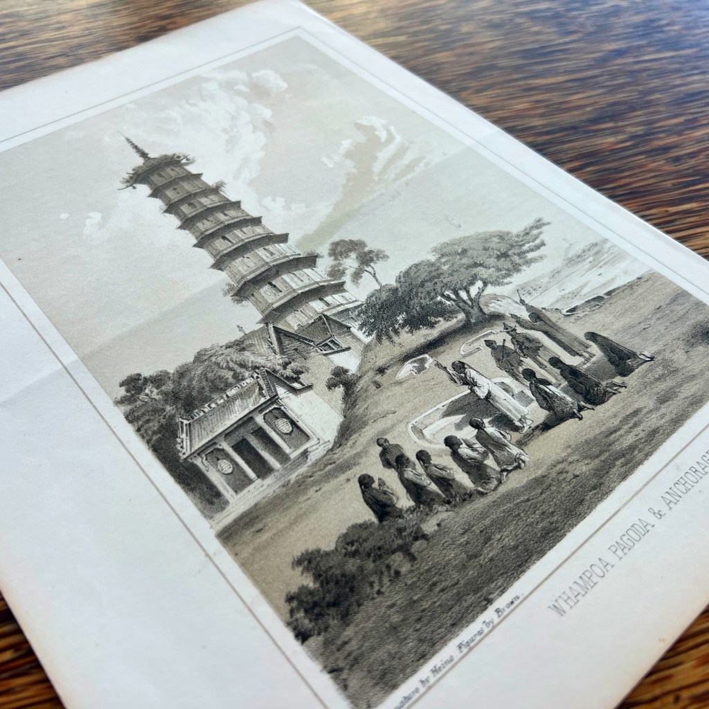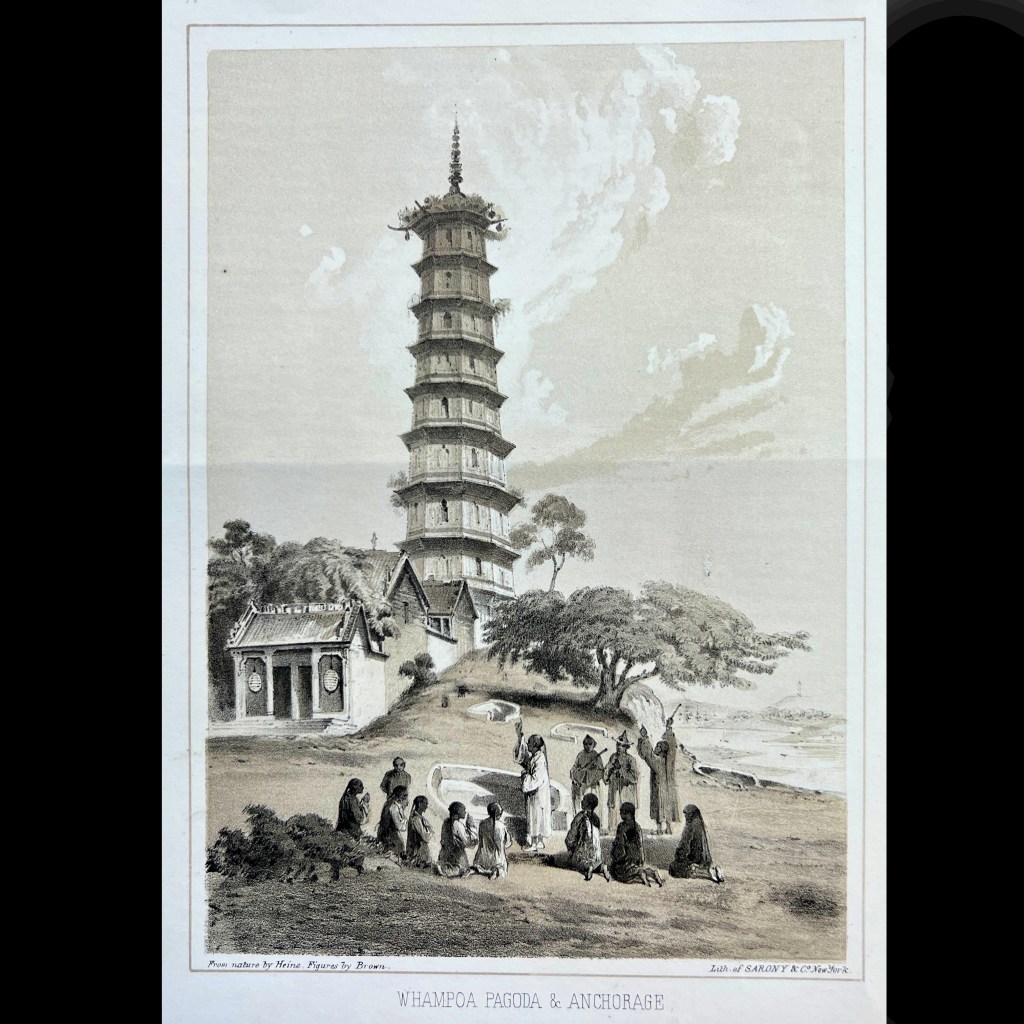 En route to Japan in 1853, the Perry Expedition stopped in Guangdong, the historic center of China’s foreign trade. Anchored in the Pearl River, expedition artist Wilhelm Heine sketched arguably one of the most famous pagodas in the world at the time: the Whampoa Pagoda.