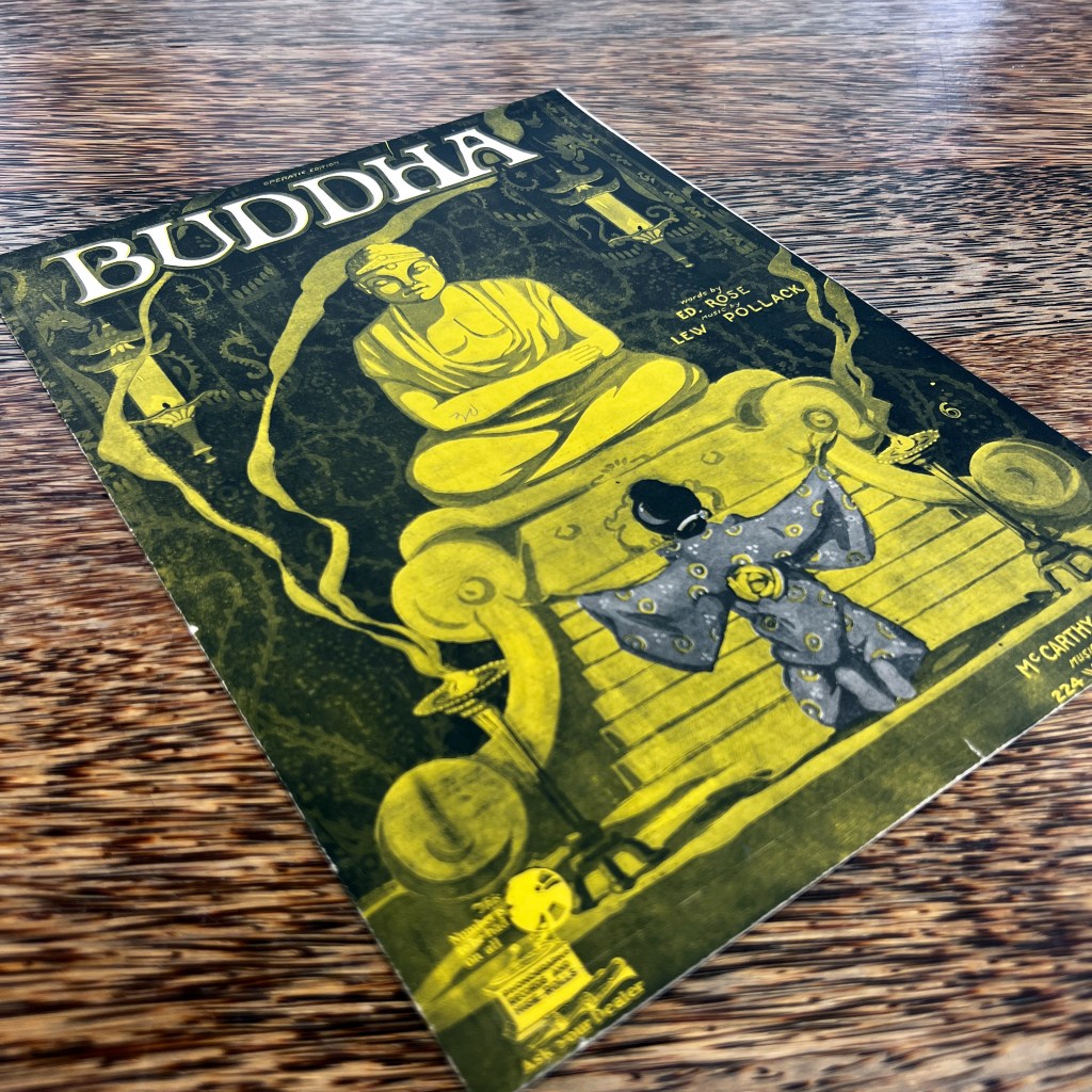 The Buddhas in the West Material Archive is a digital scholarship project that catalogues artifacts depicting Buddhist material culture for Western audiences. It’s comprised of prints, photos, and an assortment of ephemera and other objects. For a brief introduction to this archive, visit the main Buddhas in the West project page.