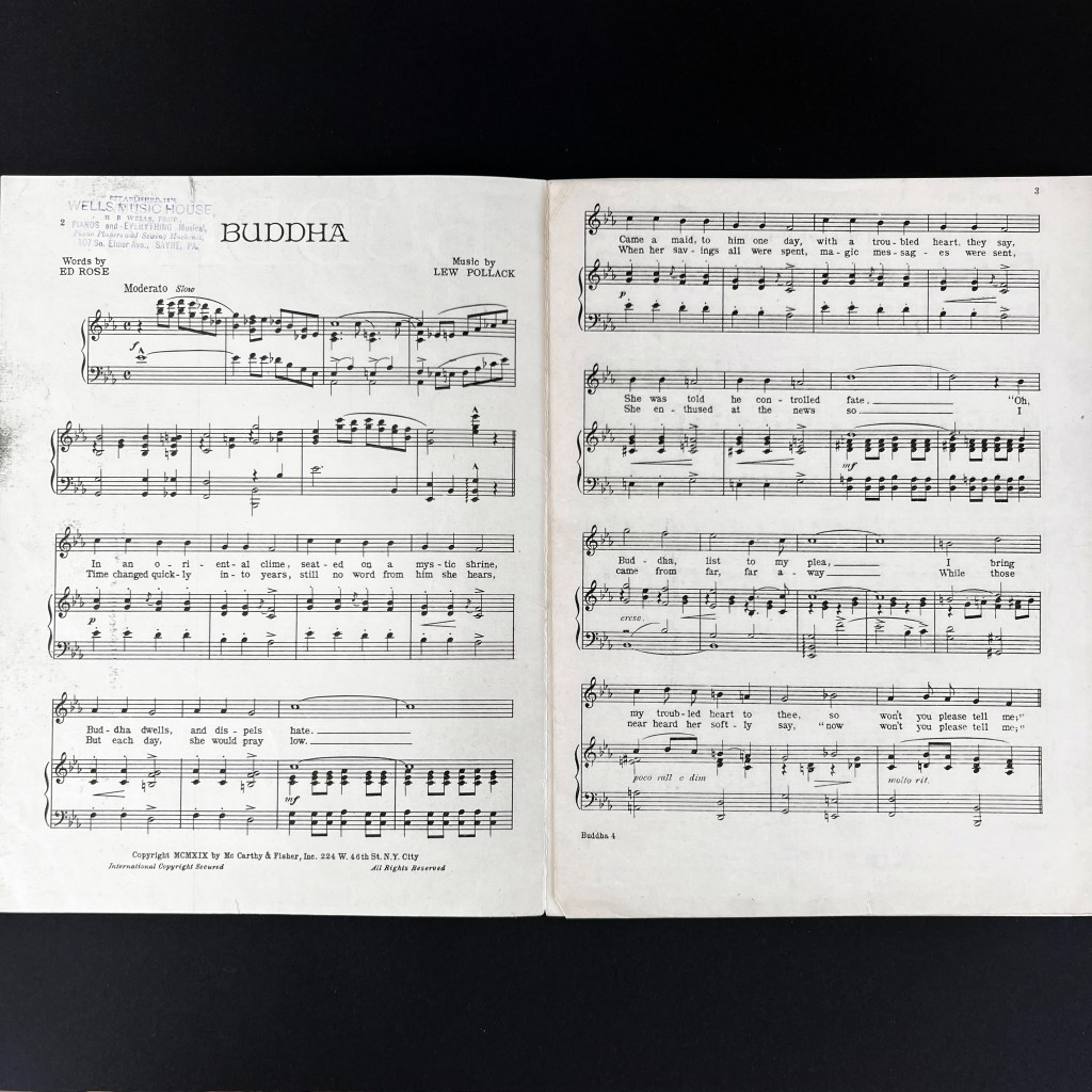 The moving Buddha image was used by Nipponophone in other business related ephemera. For example, it can be seen printed on the company’s paper record sleeves; one viewable here through the National Film and Sound Archive of Australia: https://tinyurl.com/4vk8f9sa