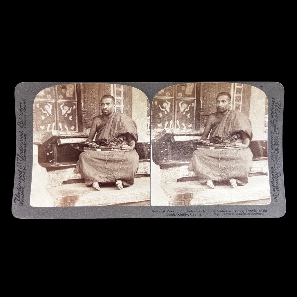 Driven in part by an anthropological mode of seeing and recording, staged studio photographs required appropriate clothing and props to clearly identify the “ethnic type.” Monk’s robes, mala beads, and prayer wheels all signaled the presence of “Llama [sic] priests” as cited in the caption.