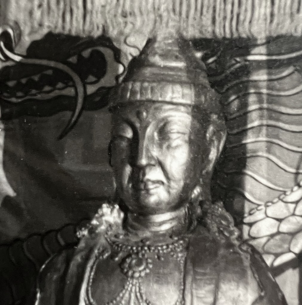 It’s worth marveling at this franken-buddha. While silent films of the 1910s and 20s sometimes used genuine Buddhist statuary, larger props were made of plaster. The craftsmen cobbled together the face of a buddha, the body of a jeweled bodhisattva, and adopted a two-fisted meditation mudra.