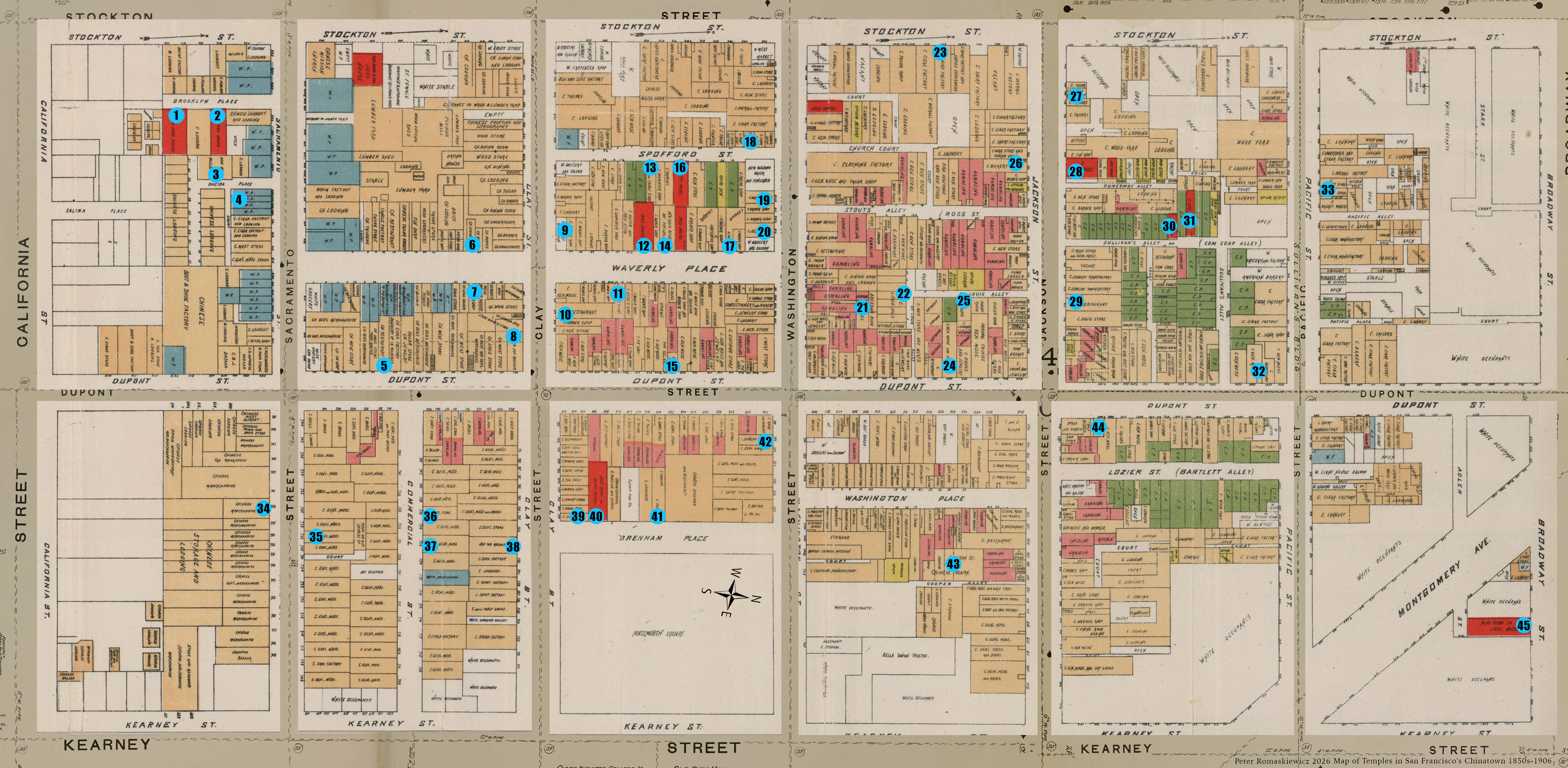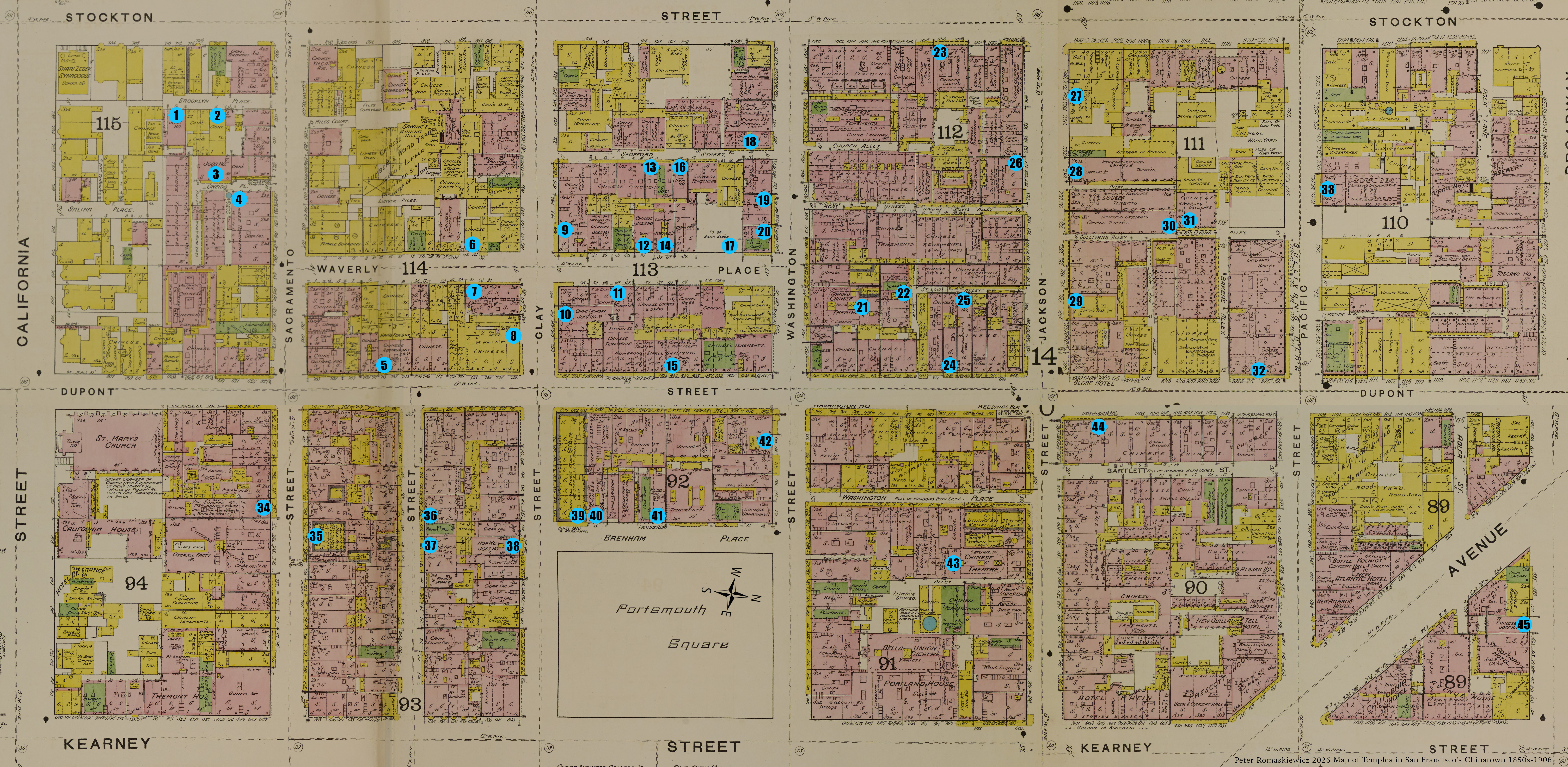 Map of Temples in San Francisco’s Chinatown: 1850s-1906
