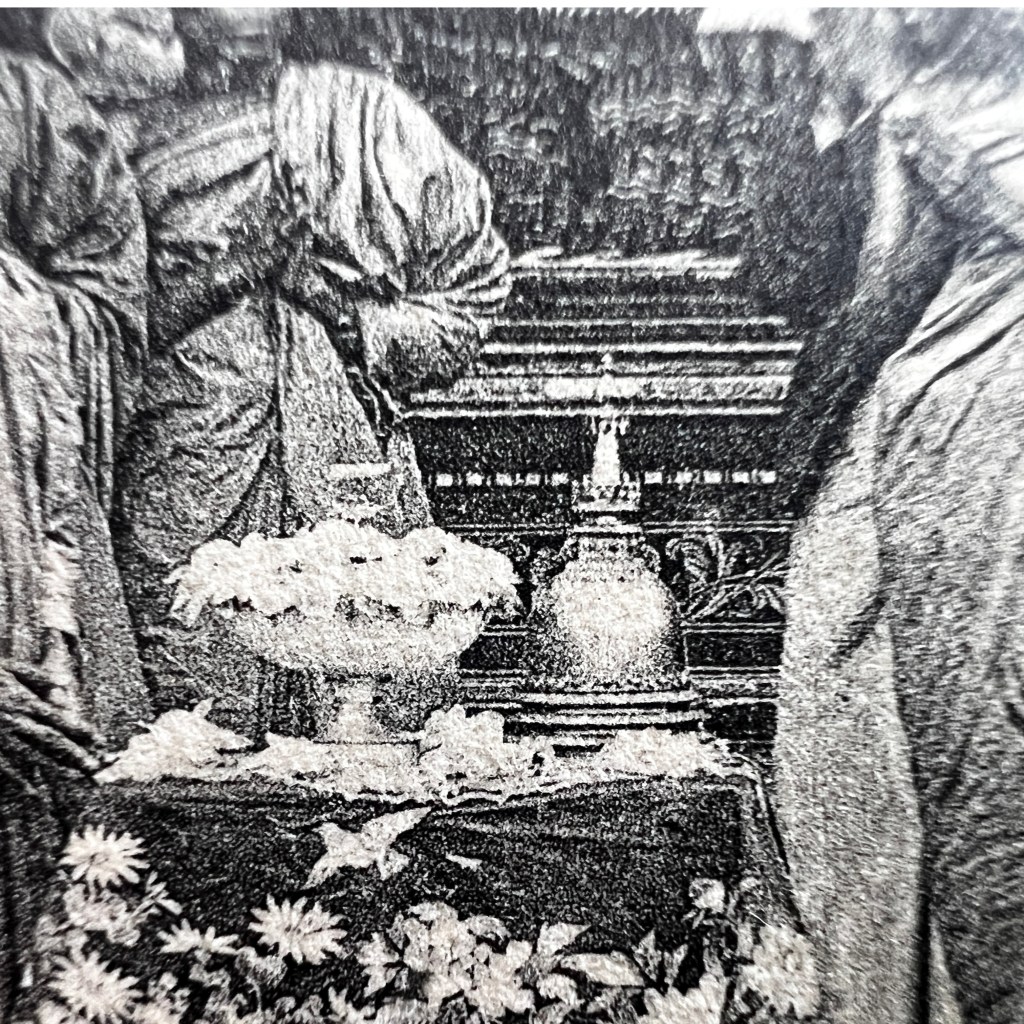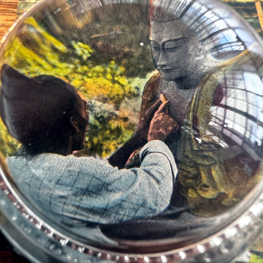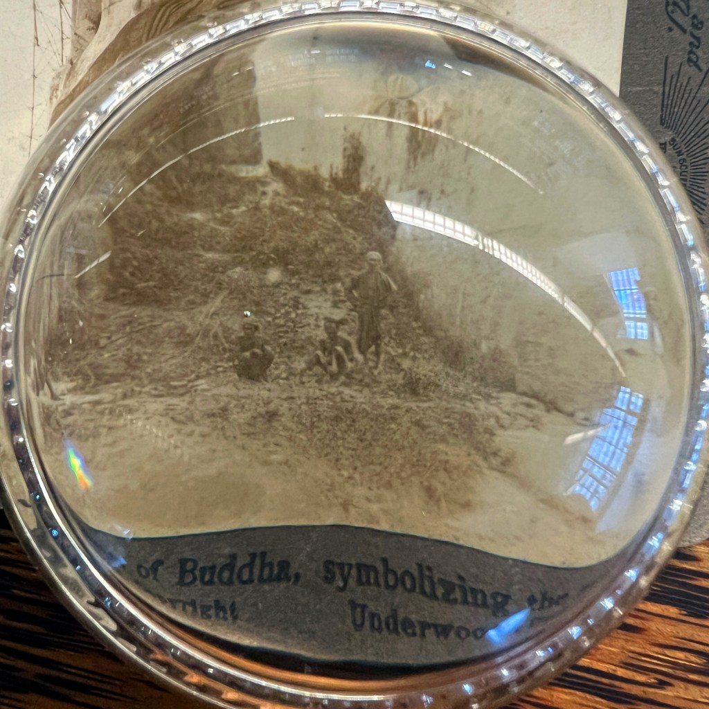 Marketed as education material, the information on the back of this stereoview offers a few generic facts about Buddhism. The unknown author also offers pointed criticism, calling the statues on the front “rigid” and chastising Buddhists for being “practically idolatrous.”