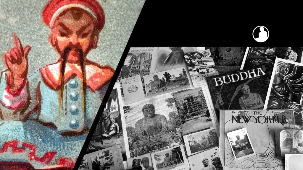 The Buddhas in the West Material Archive is a digital scholarship project that catalogues artifacts depicting Buddhist material culture for Western audiences. It’s comprised of prints, photos, and an assortment of ephemera and other objects. For a brief introduction to this archive, visit the main Buddhas in the West project page.