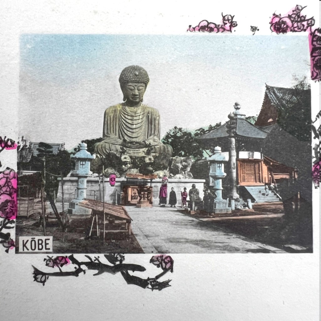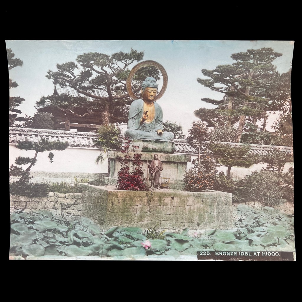 For late Victorian-era globetrotters, religious sites around Japanese port cities were often treated as picturesque tourist destinations. Such a site can be found with the Shinkō-ji lotus pond surrounding a large bronze Buddhist statue, not far from Kobe harbor.