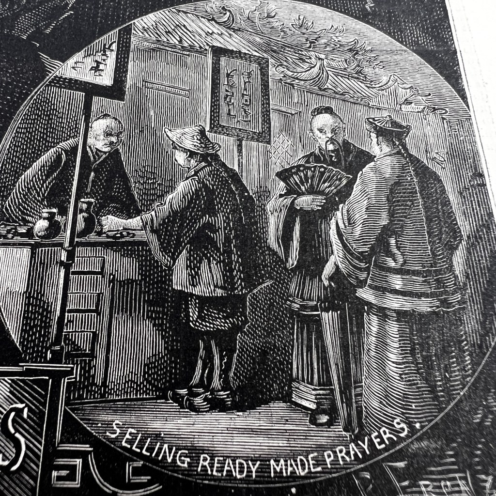In 1871, Harper’s Weekly published a wood engraving depicting the interior of a San Francisco Chinese temple, a rare print subject before the 1906 earthquake. Clues suggest it shows the main hall of Eastern Glory Temple located off Jackson St. on St. Louis Alley.