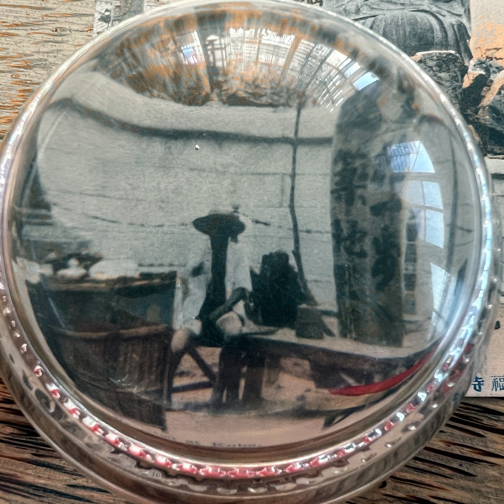 Professional and amateur photographs had long shot the Daibutsu frontally from long and medium distances. A few took photographs from the southwest corner, or even from behind, but images of the Daibutsu from the southeast were uncommon (although not unknown) likely because the temple landscaping did not easily allow for a person to position himself. The grounds of Kōtoku-in 高徳院, the temple where the Daibutsu resides, had continuously undergone renovations since Western tourists discovered it in the 1860’s, slowly opening up the areas around the statue and providing better “picturesque” viewing. One unknown photographer from Ueda was able to take a position in the southeast corner and take a photograph [Figure 1] – one of the very few from this angle.