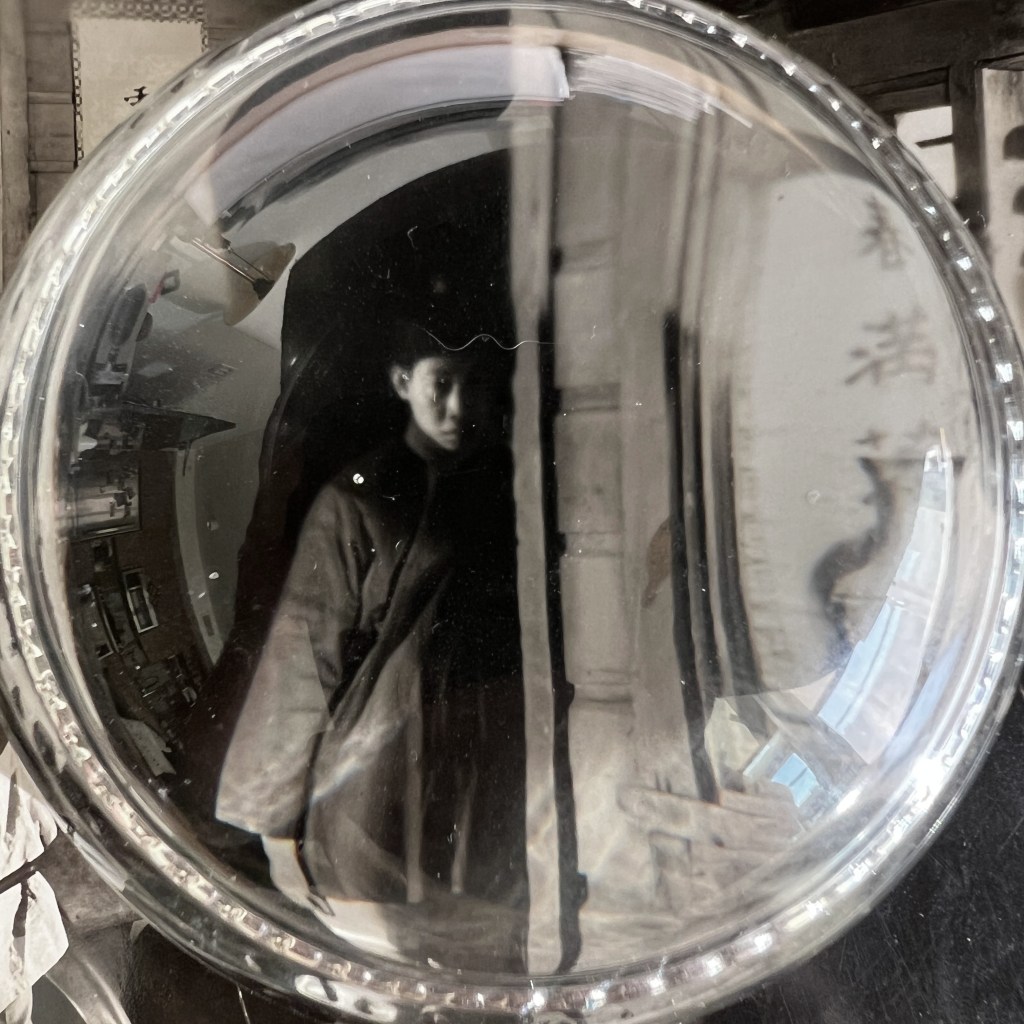 Two figures seen here in the shadows emerged in the 1920s and 30s as part of the cinematic shorthand for American Chinatowns. One, the murderous hatchet man, can be seen in the back alley, while other is seen peering out the curio shop window: an icon of a buddha.