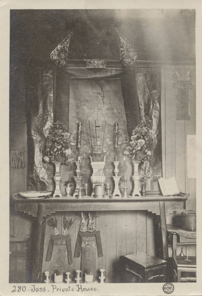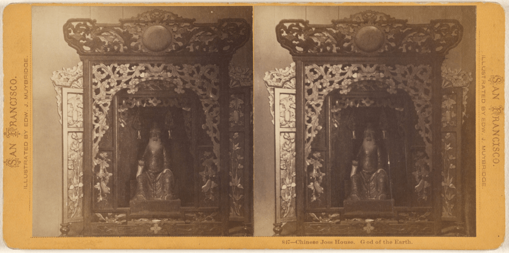 I.W. Taber, “B 2698 Chinatown, S. F. Cal. The incense table in the Joss Temple of Lung Gong,” 1887. [source]