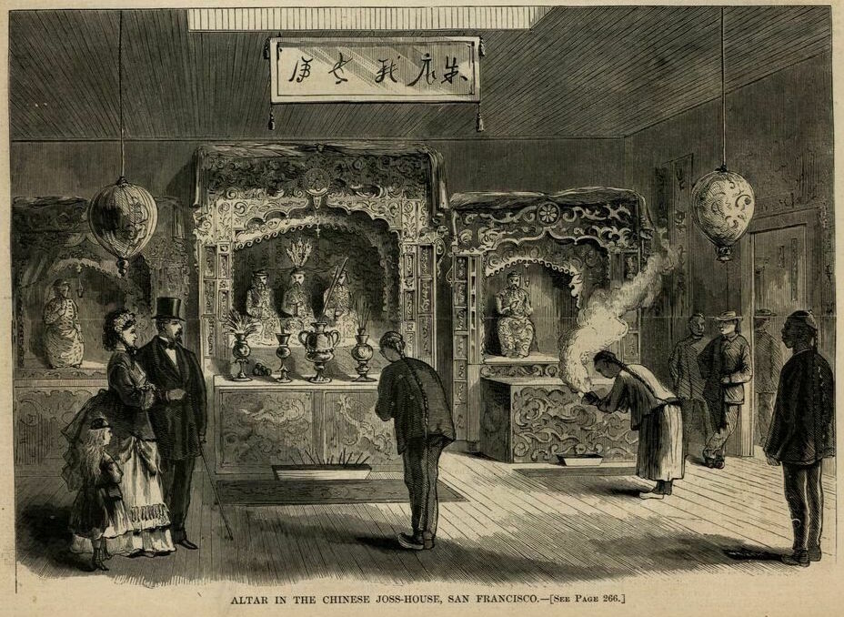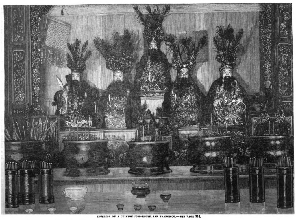[Interior of a Chinese Joss House, San Francisco] From Frank Leslie’s Sunday Magazine, April 1888, photograph by Iasiah Taber.