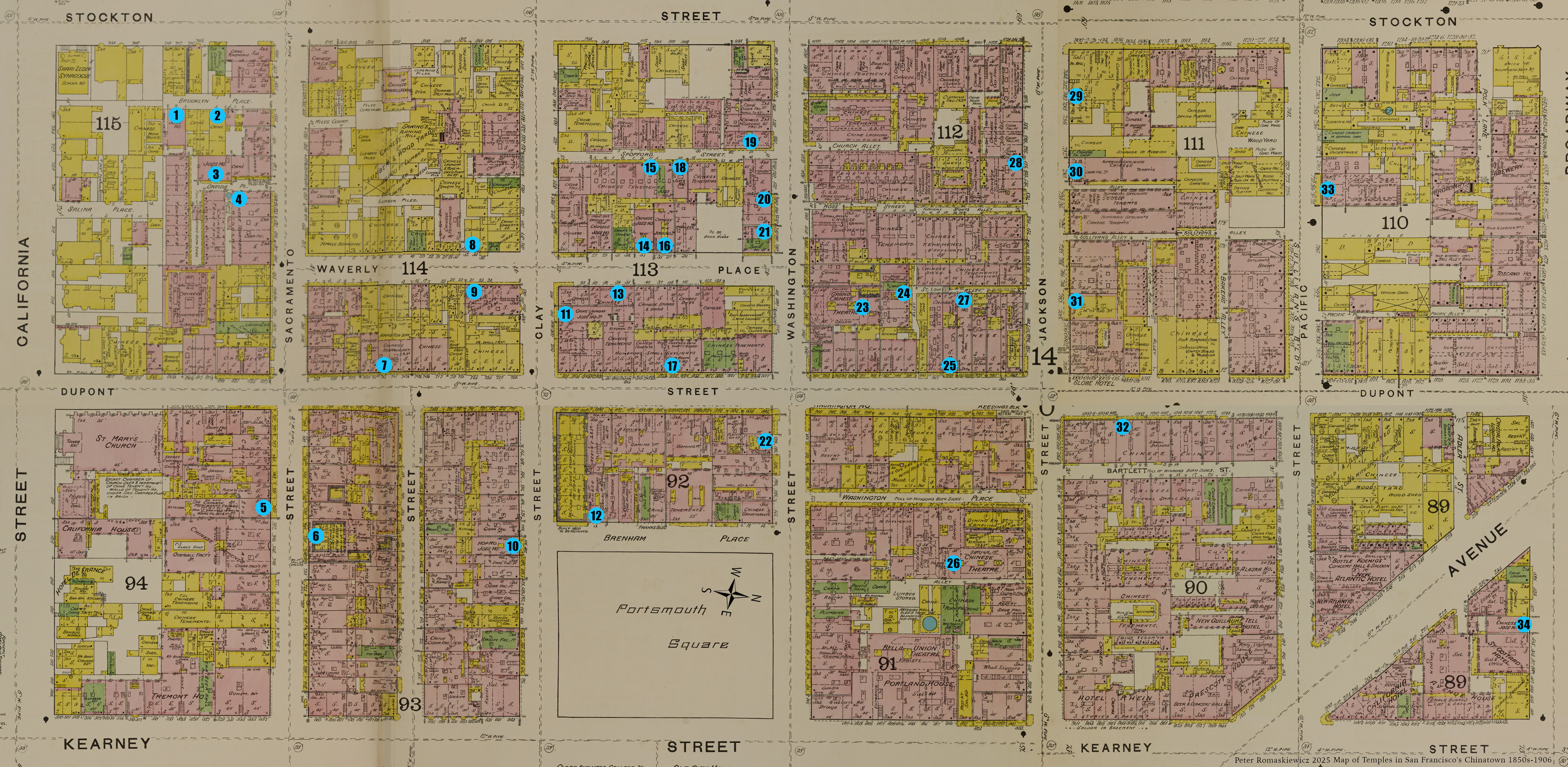 Map of Temples in San Francisco’s Chinatown: 1850s-1906