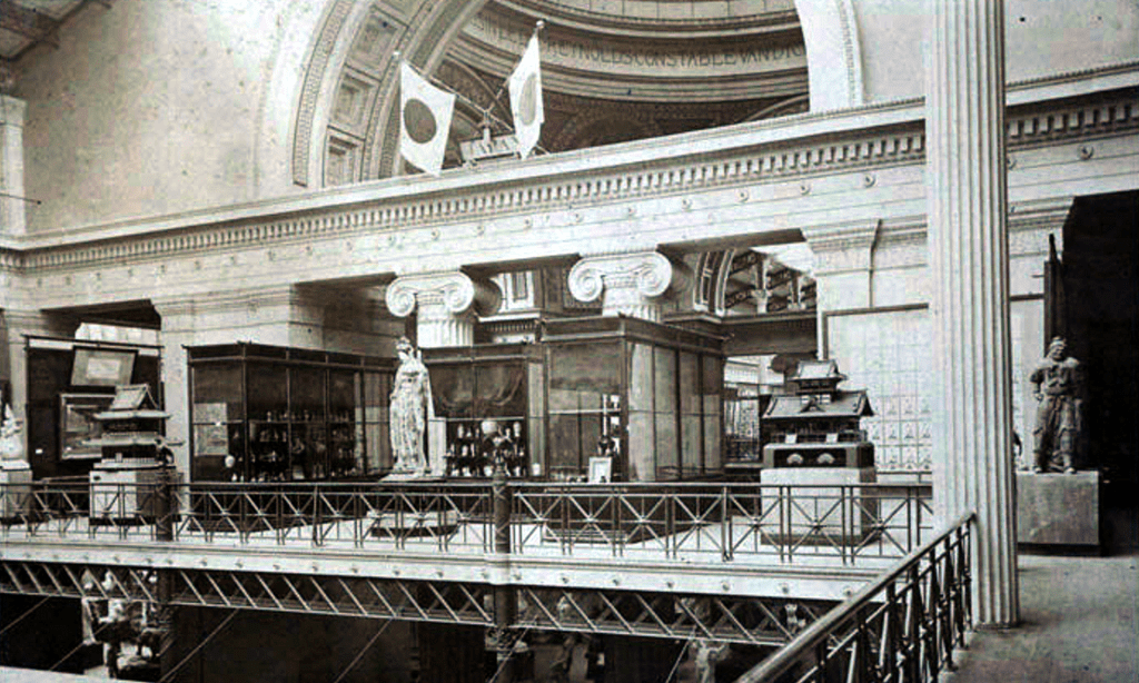 Stereoscopic view of the Japanese exhibit in the Manufacturers and Liberal Arts Building